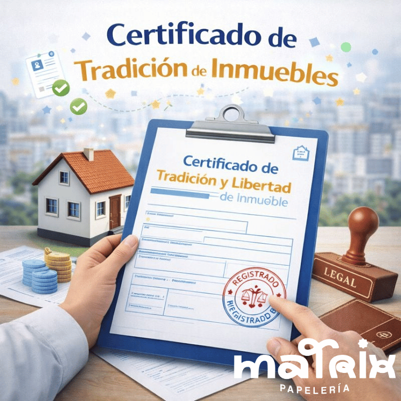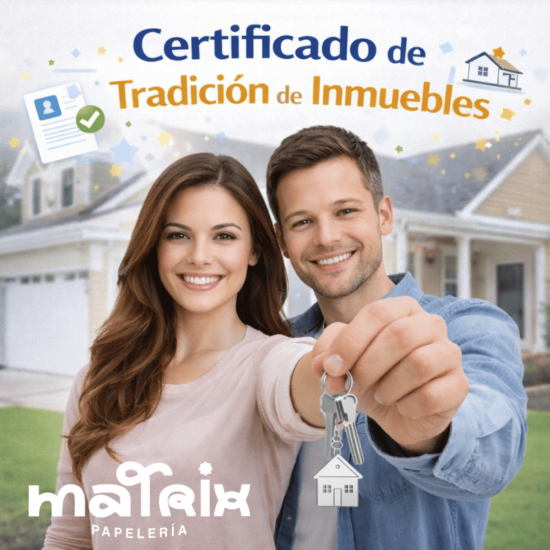 ¿Necesitas generar un Certificado de tradicion e inmueble sin filas ni complicaciones ? En Matrix Papelería lo generamos a nivel nacional de forma rápida y con acompañamiento, para que puedas avanzar con tu trámite sin perder tiempo.