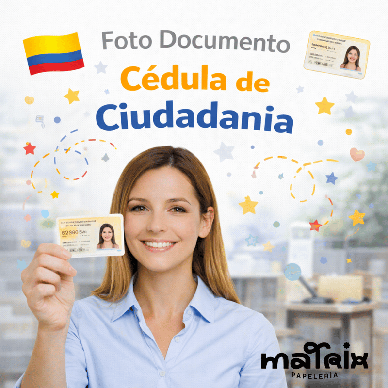 En Matrix Papelería ofrecemos el servicio profesional de foto documento para cédula en Cali, indispensable para trámites oficiales de identificación, como la obtención o renovación de la cédula de ciudadanía.