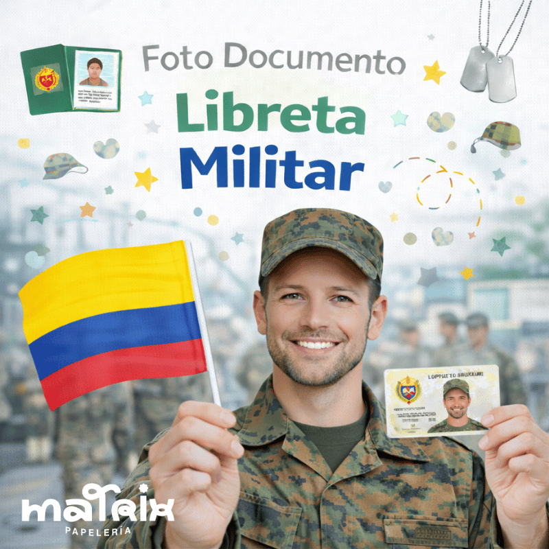 En Matrix Papelería ofrecemos el servicio profesional de foto documento para libreta militar en Cali, indispensable para trámites de registro, expedición de libreta de reservista o procesos relacionados con el servicio militar.